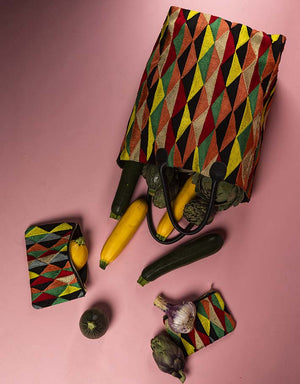 Ce cabas, à la fois vibrant et graphique, insuffle un souffle de fête et d’énergie solaire à votre quotidien.