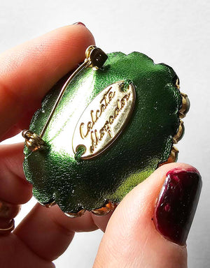La Broche Œil Céleste est devenue le classique de la marque Céleste Mogador. L'œil est délicatement brodé à la main de fils de soie colorés.