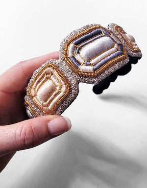 - Ces serre-tête sont entièrement brodés à la main