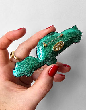 Broche brodée verte en forme de 2CV, symbole absolu de la France des années 50. Un clin d’œil rétro et joyeux à l’ingéniosité populaire.