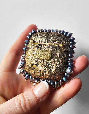 The eye is delicately hand-embroidered with colored silk threads. A row of gray freshwater pearls complete the details of this jewel loosely inspired by Victorian jewelry.