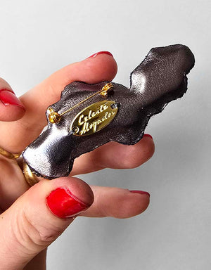 Black brooch inspired by the legendary London taxi. A chic and instantly recognizable silhouette, for a confident British look.