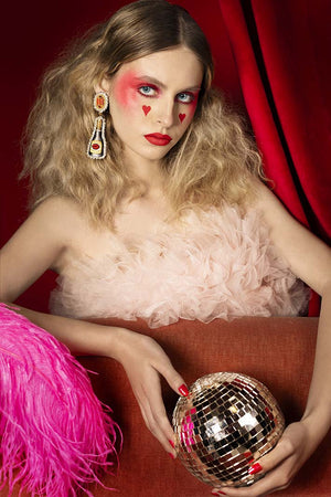 Did you know that 240,000 bottles of champagne are drunk at the Moulin Rouge every year? So here's a nod to this "fun fact" with earrings featuring a pretty red mouth on a bottle of champagne.