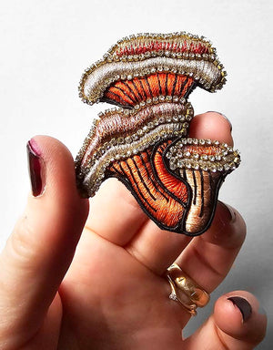 Elevate your style with our embroidered mushroom brooches.