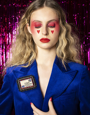 Questa spilla interamente ricamata a mano è un omaggio alla famosa artista e musa del Moulin Rouge, che amava le piume e le paillettes: Mistinguett, il creatore dei music-hall. Un pezzo che vestirà qualsiasi abito, di giorno o di sera.